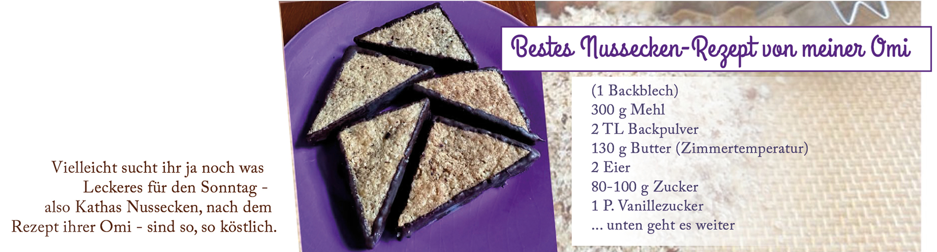 der letzten Kante nehme ich die Nussecke in die Hand, um sie danach auf dem