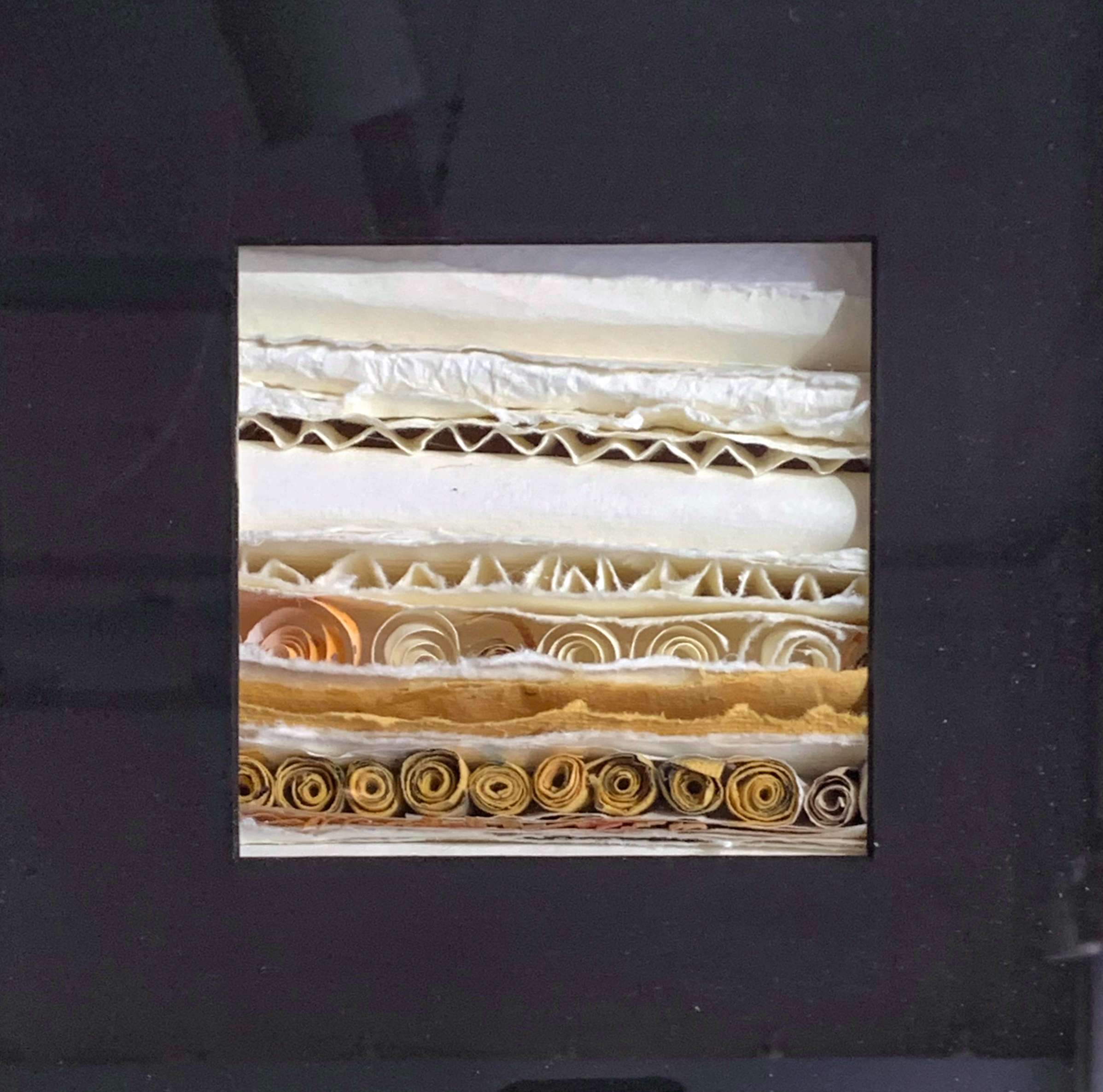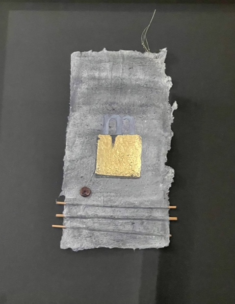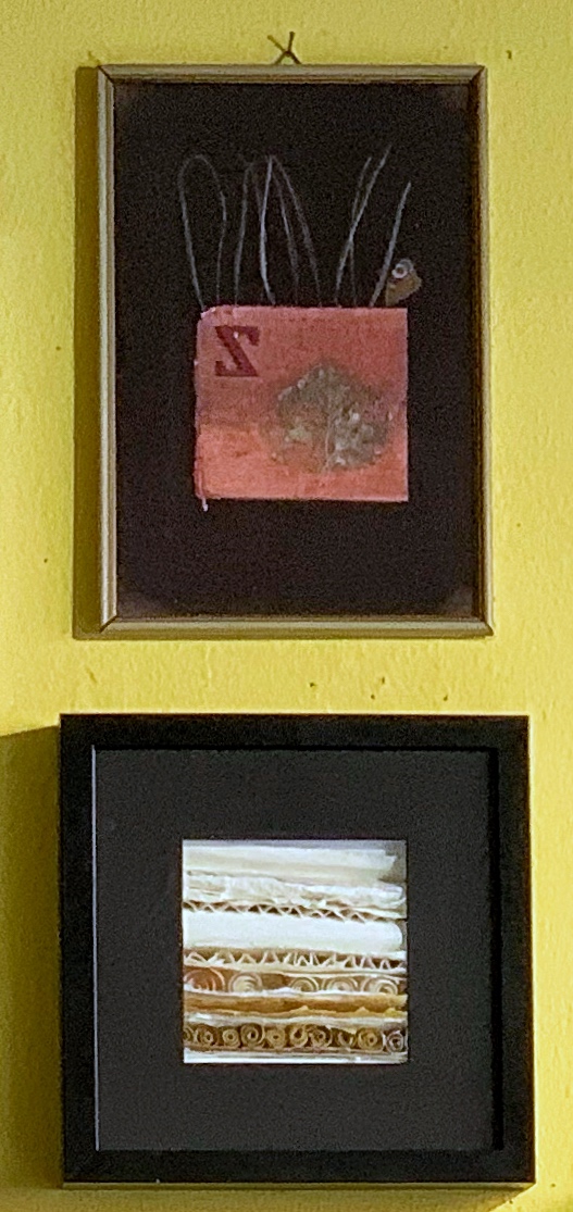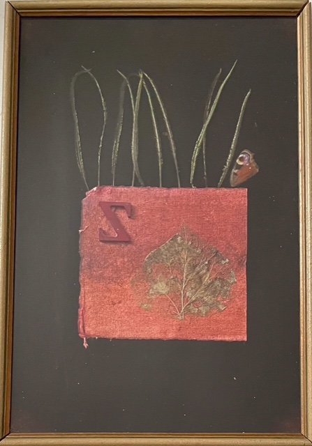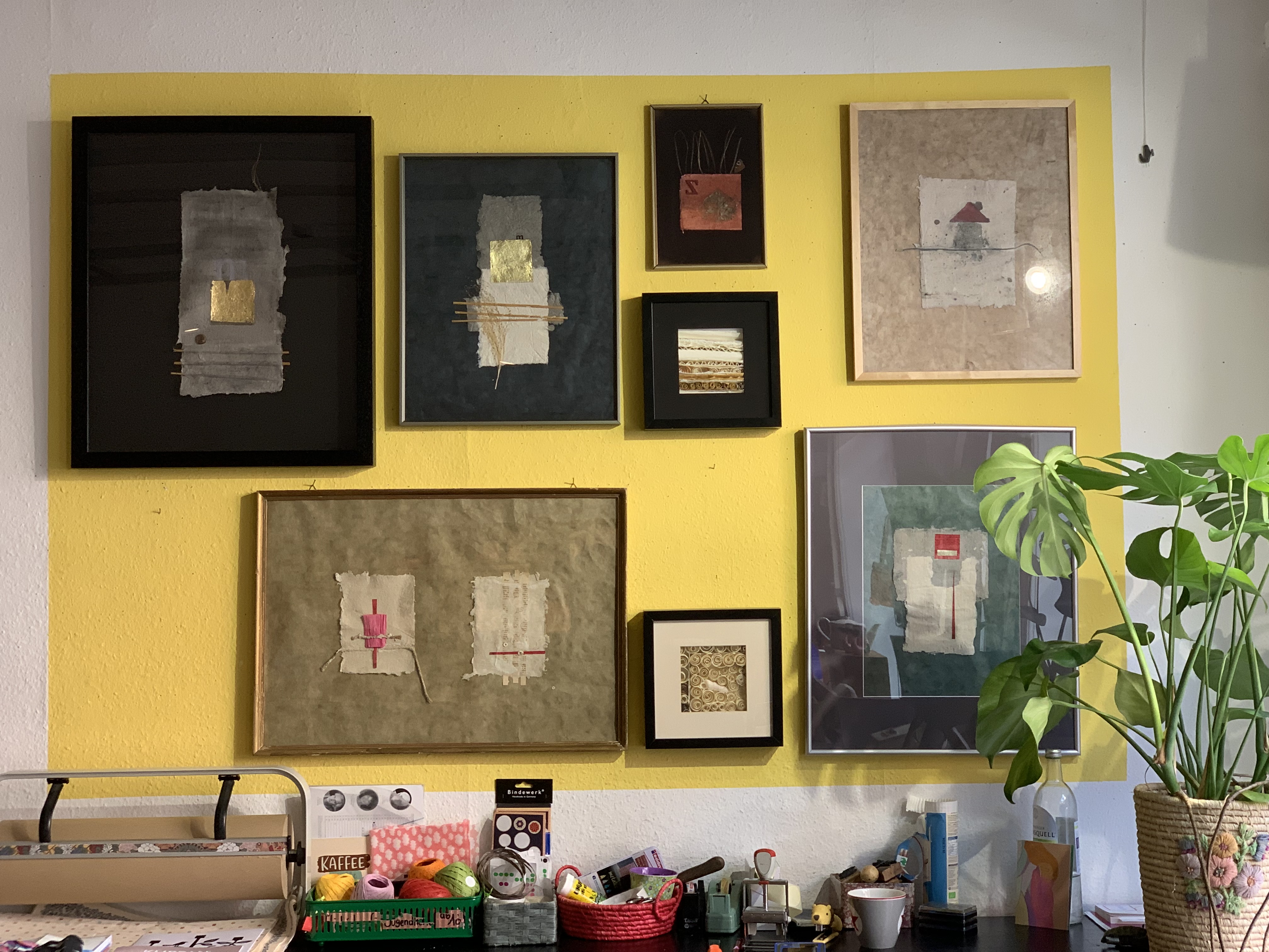 So entsteht die Grundlage für meine Leidenschaft: die Collage. Hierbei wird das Papier mit Blattgold, Strohhalmen, Buchstaben, Blättern oder was gerade so „vorbeikommt“ kombiniert.